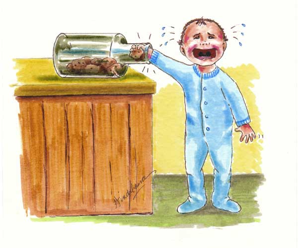 “Once more I strained, shoving my hand out the slim opening. The hatch didn’t move any more. I tried to pull my hand back in. It was stuck. Stuck in the cookie jar of the outside world.”