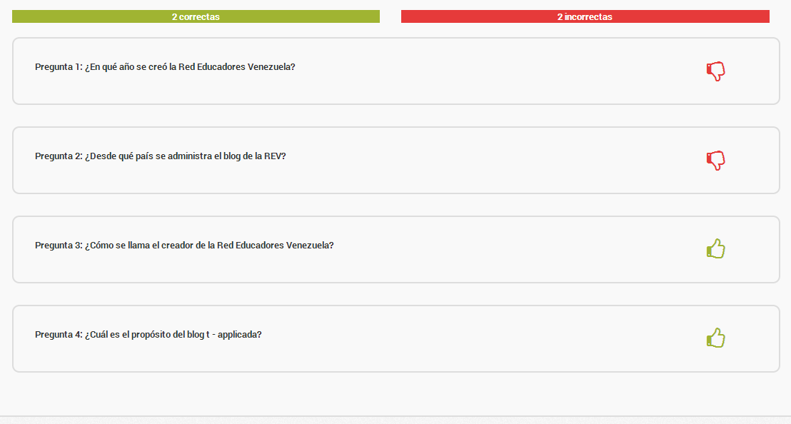 Al realizar el test, los estudiantes verán en sus pantallas los resultados de forma sencilla y bastante gráfica: