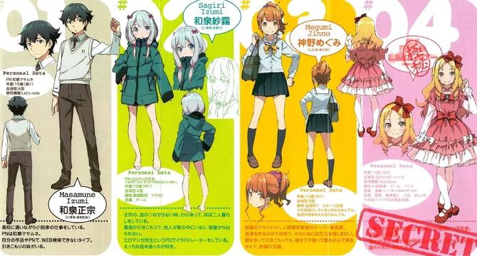 Izumi Sagiri is the shut-in younger step-sister to the protagonist Izumi Masamune and also the famous illustrator Eromanga-Sensei, who is well known for her erotic drawings, though few know her true identity. While she seems innocent, she is surprisingly perverted. |