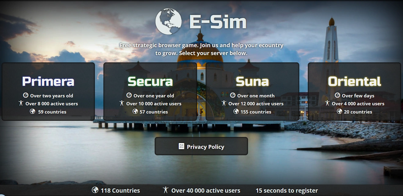 Official Wikiapedia filled with information about browser based game - E-Sim.