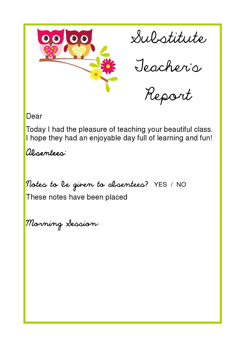(This form should be completed by the regular classroom teacher and left for the substitute teacher.)