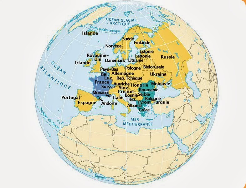 Voilà le globe terrestre avec les noms des Pays européens. Cliquez ICI