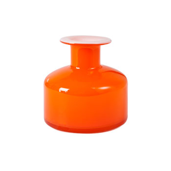 Jarrón de vidrio de color con forma de botella. Puede contener agua. Cuidados: Lavar con agua y jabón.