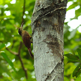 Substitui o arapaçu-de-bico-vermelho(Hylexestetes perrotii) na Amazônia Ocidental.
