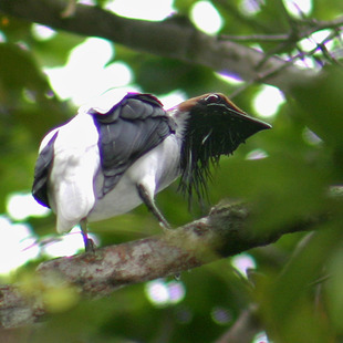 Varia de incomum a localmente comum na copa e nas bordas de florestas úmidas e capoeiras.