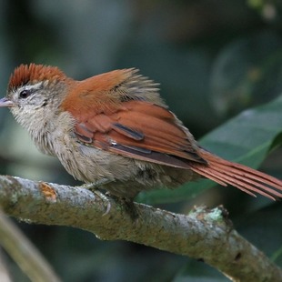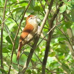 Um pouco menor do que o curutié(Certhiaxis cinnamomeus), a princípio pode ser confundido com ele. No entanto, a plumagem do dorso é completamente marrom avermelhada, formando um forte contraste com o ventre claro. A listra superciliar é maior e mais nítida, bem como o bico é claro com uma linha escura superior (é todo negro no curutiê).