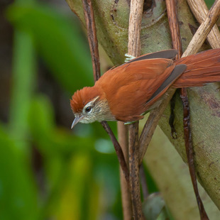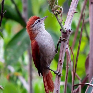 Vive em casais ou pequenos grupos, possivelmente associações dos filhotes da última reprodução, buscando invertebrados entre as folhas.