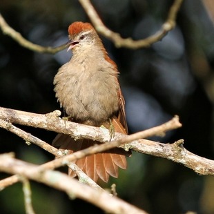 As atividades constantes das aves dificultam a identificação e, muitas vezes, são primeiro escutadas, antes de serem localizadas. O canto, um dueto entre macho e fêmea, começa com uma risada baixa, acelerada e mais alta no final. É emitido o ano inteiro, sendo de julho a dezembro (período reprodutivo) com enorme freqüência. Enquanto caçam insetos, vão cantando continuamente, às vezes dependurados em cipós, de cabeça para baixo.