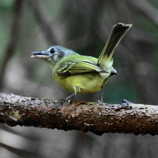 Insetívoro da parte média da mata seca e cerradão, ocasionalmente em manchas mais largas de mata ciliar em área sem inundação. Comum nos ambientes típicos, difícil de ser observado pela camuflagem da cor olivácea do corpo com a folhagem. Pousa em locais expostos (galhos e cipós), mas o comportamento de ficar parado à espera de uma presa passando também dificulta a localização. Depois de visualizado, é fácil de ser seguido, por dar pequenos vôos até o próximo poleiro. Territorial, vive solitário ou em casais. É residente o ano todo no mesmo local.