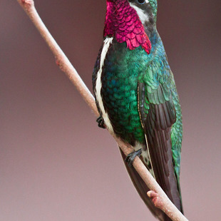 Mede cerca de 12,5 centímetros de comprimento. Nesta espécie a fêmea difere do macho principalmente por apresentar a garganta e o peito escamados, isto é, apenas com a parte central verde e o restante cinza-claro. No inverno, o macho adulto perde a plumagem vermelho-violeta iridescente da garganta e do peito, assemelhando-se à fêmea e aos jovens.