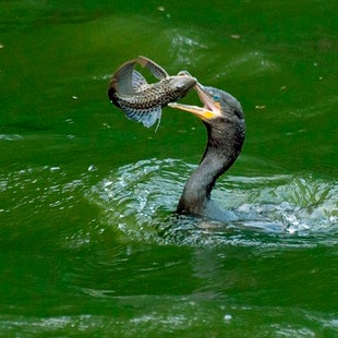 Ave aquática, mergulha em busca de peixes e permanece um bom tempo debaixo d'água, indo aparecer de novo bem lá na frente, mostrando apenas o pescoço para fora d'água. Para facilitar seus mergulhos, suas penas ficam completamente encharcadas, eliminando o ar que fica entre elas . Para secá-las é comum vê-lo pousado com as asas abertas ao vento. Quase sempre visto em grandes bandos voando próximo d'água, em formação em “V”. Quando voa se assemelha a patos, sendo às vezes considerado como tal, equivocadamente.