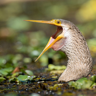 Habita alagados e beiras de rios e lagos com margens florestadas. Bom nadador, costuma deixar apenas a cabeça e o pescoço fora d'água, parecendo uma cobra. Voa e plana bem, apesar de ter certa dificuldade para levantar vôo a partir da água.