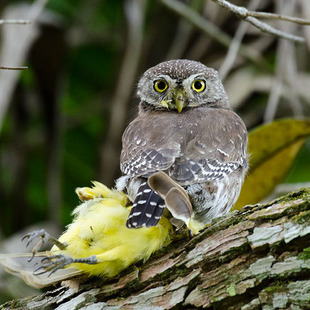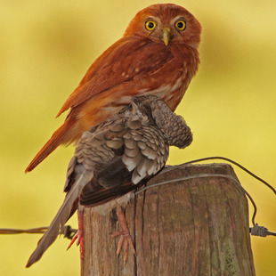 Bastante agressiva para seu porte, chega a abater presas maiores do que seu próprio tamanho. Ao ser localizada pelas outras aves, é imediatamente cercada e “denunciada” com pios e voos especiais.