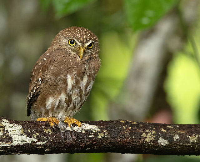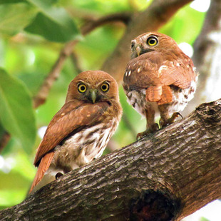 Uma característica que diferencia o caburé (Glaucidium brasilianum) do caburé-miudinho (Glaucidium minutissimum) é que o primeiro possui estrias na testa, enquanto o outro possui pintas.