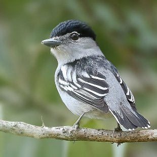 Segue bandos mistos que têm por espécie nuclear thamnofilídeos do gênero Thamnomanes e também ocorre ao lado de outras espécies do gênero Pachyramphus.
