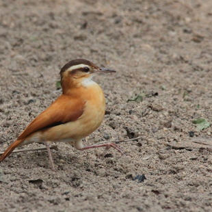 Mede de 16,5 a 19 cm de comprimento. Um pouco menor do que o joão-de-barro(Furnarius rufus), possui o mesmo formato de corpo e proporções gerais. Destaca-se pelas cores mais vivas, um marrom avermelhado forte nas costas e peito. No entanto, sua melhor característica é a grande listra branca nos lados da cabeça, além da garganta branca, ambas contrastando com o cinza dominante dessa parte do corpo. Da mesma maneira que o joão-de-barro, o casal faz duetos, em especial pela manhã. O canto é mais acelerado, uma risada longa, aguda, com as notas mais separadas no final, quando lembra o canto da espécie mais conhecida.