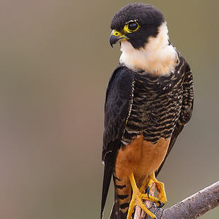 Tem cerca de 26 centímetros, o macho pesa aproximadamente 120 gramas e a fêmea, 200 gramas. É pequeno, negro, com peito e barriga listrados de branco. Tem garganta, papo e lados do pescoço amarelos ferrugíneos ou brancos, abdômen e calções castanhos. Quando jovem possui coberteiras inferiores da cauda amareladas e barradas de negro.