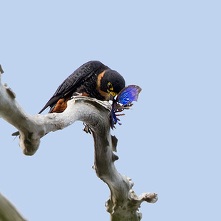 Varia de incomum a comum em algumas regiões, habitando bordas de florestas e clareiras. Vive solitário ou aos pares, passando a maior parte do tempo pousado em postes e no alto de árvores mortas.