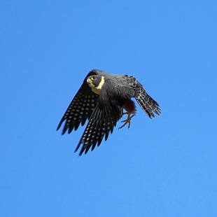 Captura suas presas com habilidade, tanto em vôo - morcegos, insetos e aves - quanto no chão - ratos e pequenos lagartos. É um caçador hábil. No crepúsculo apanha morcegos e mariposas; de dia apanha libélulas, gafanhotos, ratos, lagartixas e algumas aves como andorinhões (família Apodidae) e araçaris.