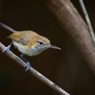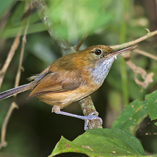 Pula entre os emaranhados de vegetação em busca de insetos. Às vezes participa de bandos mistos de insetívoros.