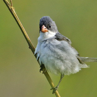 Mede cerca de 12,5 centímetros de comprimento. O macho é cinza nas partes superiores e branco nas inferiores e a fêmea é marrom-olivácea nas partes superiores e bege-amarronzada nas inferiores; os jovens são pardos.
