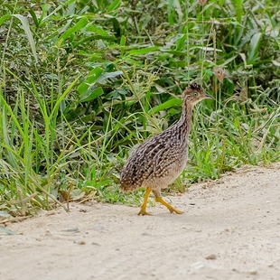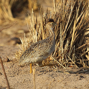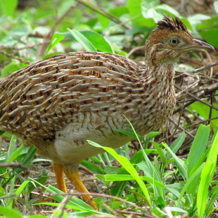 Muito confundida com a codorna-amarela, difere-se pelo topete vertical negro. Suas cores se misturam com o ambiente em que vive.