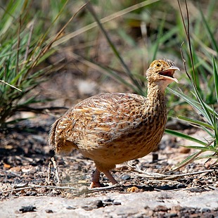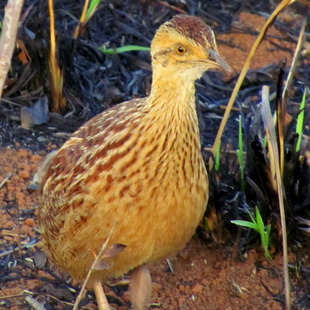 Vocalização: Emite uma série de longos e altos sons de um metálico silvo “peeeep”, também em forte e curtas notas. Assemelha-se com a codorna-amarela(Nothura maculosa), mas é bem menor.