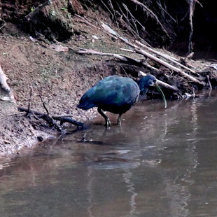 Nidifica na mata alta e alagada, construindo seu ninho em plataformas sobre os galhos. Os filhotes são parecidos com os pais, mas com menor intensidade de brilho nas penas.