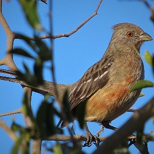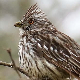 A fêmea apresenta a cabeça clara com forte estriado escuro. Seus olhos são marrom claro. Toda a parte de trás da plumagem apresenta estrias castanho-escuro e bege. Como na plumagem do macho, as asas da fêmea apresentam duas manchas brancas mas menos acentuadas do que no macho e as extremidades das penas terciárias são claras. A cauda é semelhante a cauda da ave do sexo masculino. O peito é bege com estrias marrom escuro o ventre também é estriado, mas as estrias se apresentam com menos intensidade e em menor número. O crisso é bege.