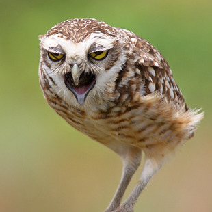 A qualquer sinal de perigo, a coruja buraqueira emitem um som alto, forte e estridente. Esse alarme é dado durante o dia, chamando a atenção para a coruja. Os filhotes, ao escutarem o alerta, entram no ninho, enquanto os adultos voam para pousos expostos e atacam decididamente qualquer fonte de perigo para os filhos. Eles também fazem outros sons que são descritos como pancadas e gritos, que é parecido com “piá, piar, piaaar”. Quando as buraqueiras emitem esses sons, normalmente estão movimentando a cabeça, para baixo e para cima. Os filhotes também emitem sons: quando perturbados, produzem um som que lembra o de uma cascavel, espantando assim os predadores.