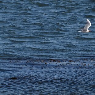 É parecida com a gaivota-pequena(Larus minutus), distinguindo-se pelo padrão das asas e pela cauda ligeiramente bifurcada.
