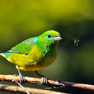Frutinhas da mata, pequenas larvas, folhas e também néctar. Aprecia a erva-de-passarinho, planta frequente nas cidades.