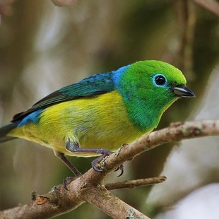 Mede cerca de 10 centimetros e pesa 13 gramas. Os machos de tais aves têm as cabeças, gargantas e pescoço verdes, dorso, boa parte das asas e uropígio azuis, ventre amarelo dourado, enquanto as fêmeas diferem pela barriga esverdeada, uma mancha azul triangular somente na nuca, asas totalmente verdes.