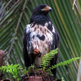 Constrói um ninho grande composto por ramos verdes e galhos secos. Botam de 1 a 3 ovos, cuja incubação varia de 43 a 50 dias. Os filhotes ficam totalmente emplumados depois de 50 dias.