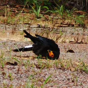 É onívoro, alimentando-se de carniça, larvas de besouros corta-pau, tanajuras, sapinhos e rãs, lagartos, cobras, filhotes de pássaros, pequenos mamíferos e peixes. Tira também carrapatos de antas e de veados. Gosta de frutos, como cocos de buriti e de dendê. Procura queimadas para alimentar-se de insetos e ou-tros animais em fuga.