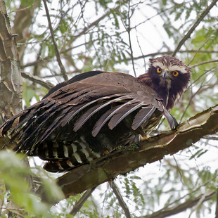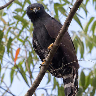 Alimenta-se de mamíferos, aves e répteis, tirados em grande parte das árvores da floresta. Comumente escolhem um puleiro preferido de onde detectam suas presas antes do ataque.