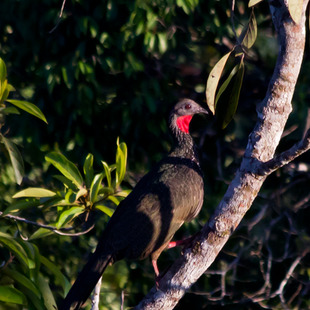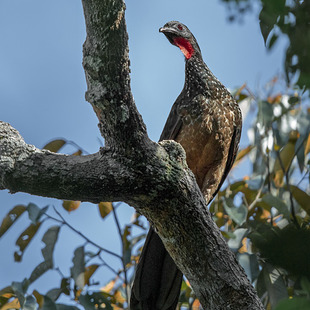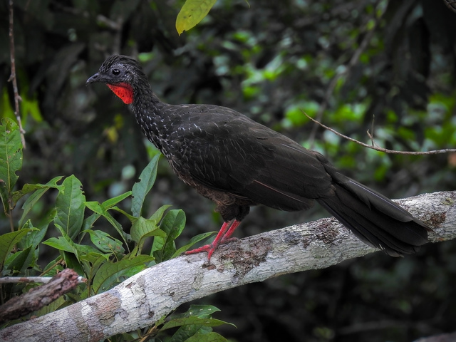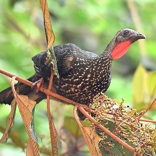 Vive solitário ou em pequenos grupos essencialmente arborícolas, raramente descendo ao solo, em bordas de florestas úmidas próximas de rios e lagoas. Produz um forte ruflar de asas em "display" de voo, entre as árvores, principalmente pela manhã e de madrugada.