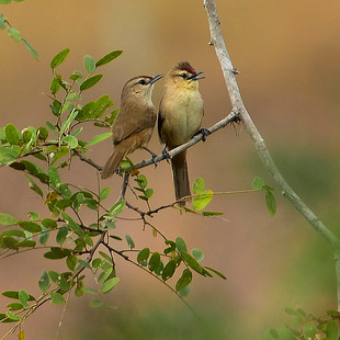 O casal possui um dueto em que um inicia o canto e, depois de pouco tempo, o segundo emite uma risada mais curta, levemente acelerada no final. Cantam a qualquer hora do dia, às vezes dentro do ninho. O voo para entrar na estrutura é muito rápido, podendo passar despercebida a chegada ou saída dos moradores.
