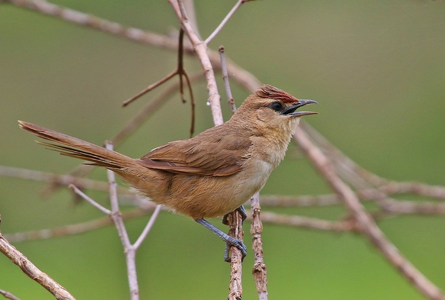 A ave em si é muito mais difícil de ser observada do que seu ninho. Além do porte, possui o comportamento de ficar escondida no meio das folhas de árvores e arbustos, voando rapidamente de pouso a pouso. Movimenta-se muito e logo dá o alarme, com piados agudos, sobre a presença de estranhos. Nesses momentos, os membros do grupo (varia de um casal até 10 aves) passam a repetir o chamado, enchendo a vegetação de gritos, mas pouco aparecendo.