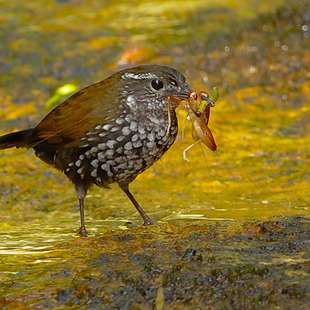Habita o chão, ou suas proximidades, em florestas úmidas, florestas em montanhas e capoeiras, porém sempre em vegetação densa à beira de água corrente de rios e igarapés, podendo ser raro ou localmente bastante comum. Vive solitário e desloca-se pulando pelo chão.