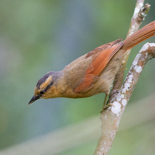 Percorre o interior das matas dependurando-se sob folhas e galhos em busca de alimentos, como artrópodes, insetos e larvas.