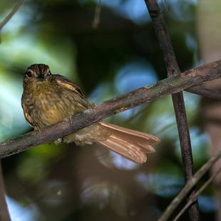Vive nos níveis médio e alto de florestas, principalmente terra firme. Anda sozinho ou de casal e eventualmente acompanha bandos mistos.