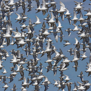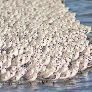 É altamente gregário, no inverno, às vezes formando grandes bandos em lodaçais costeiras e praias arenosas.