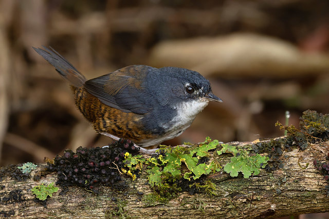 Assim como os demais membros da família, é insetívoro, caçando no sub-bosque revirando as folhas e encontrando seu alimento na vegetação de seu território.