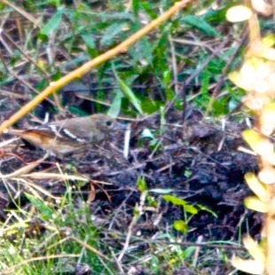 A fêmea é marrom acinzentado acima do qual torna-se castanho avermelhado no uropígio e na base da cauda superior. As penas têm uma banda terminal preta. As asas escuras apresentam barras alares na coloração camurça. A parte inferior, (peito e ventre) é estriado com manchas escuras. As estrias são menos intensas no ventre.
