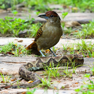 Captura pequenos vertebrados, grandes artrópodes e caracóis terrestres. Muito raramente segue bandos mistos.