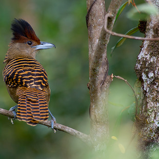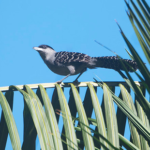 Maior representante da família thamnophilidae, mede 34 cm de comprimento. Ave de cauda longa, os machos têm topete negro e dorso listrado de branco e as fêmeas dorso pardo com listras negras. É inconfundível em campo pelo porte e pelo padrão característico da plumagem.