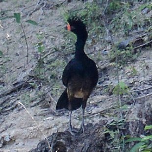 O mutum-de-fava tem um assovio macio, “yeeeeeee”, que dura de quatro a seis segundos.