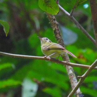 Substitue o papa-moscas-de-olheiras(Phylloscartes oustaleti) em altitudes entre 0 e 400 metros na Serra do Mar e raramente acima de 1000 metros de altitude. Forrageia solitário no estrato superior e segue bandos mistos.