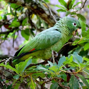 Habita a copa de florestas densas, tanto em seu interior como nas bordas. Seu comportamento é semelhante ao de outros papagaios, com a diferença de que prefere florestas mais densas, até 1.100 m.